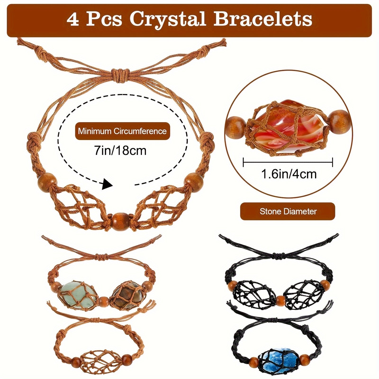 10pcs Crystal Necklace Bracelet Holder Cord, Adjustable Empty Stone Holder, Boho Cage Holder Rope for DIY Jewelry Making