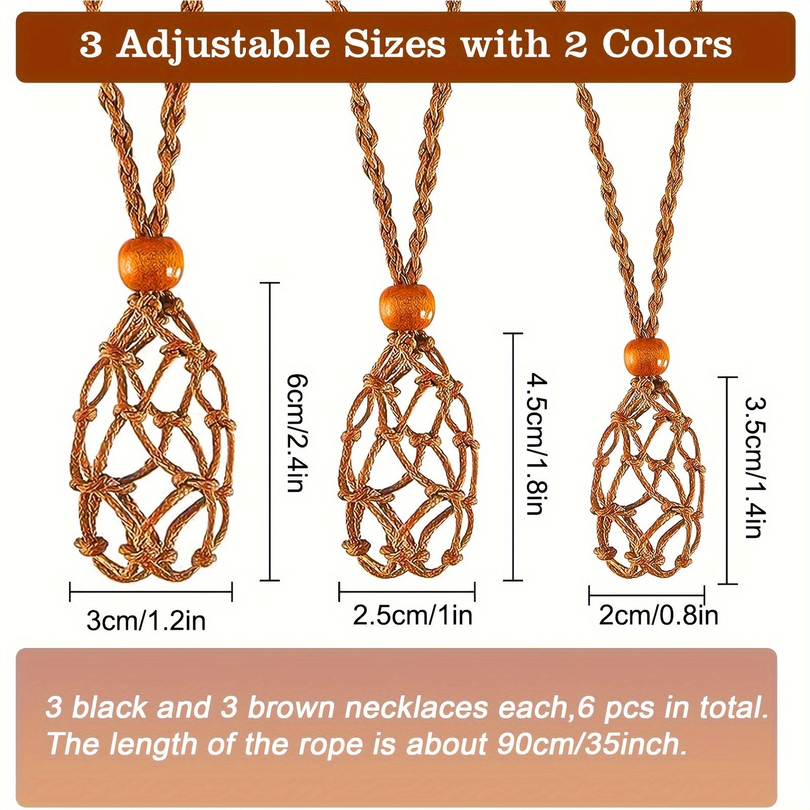 This set includes 6 necklace cords in three sizes (large, medium, small) and 4 bracelet cords (single and double bracket). The adjustable length allows for secure fitting with wooden beads, while slip knots make it easy to customize the size. Crafted from natural cotton wax thread and wooden beads, they are soft and lightweight. Perfect for DIY jewelry making, the braided netted holder can accommodate quartz, crystals, beads, and pendants, ideal for creating unique bracelets and necklaces.