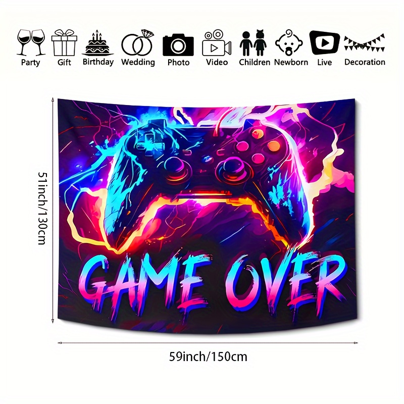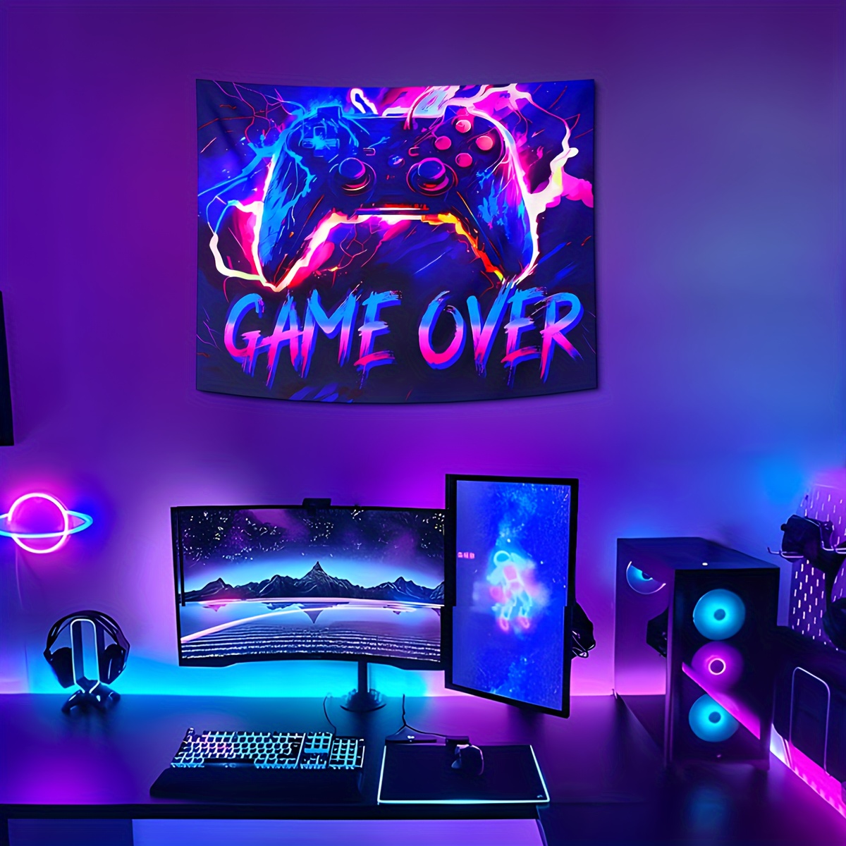 1pc Fluorescent Gaming Tapestry - Vibrant Gaming Theme, UV Blacklight Neon Lights - Ideal for Game Rooms, Dorms, Living Spaces - Enhance Your Home Decor with Dynamic Glow - Free Installation Kit Included