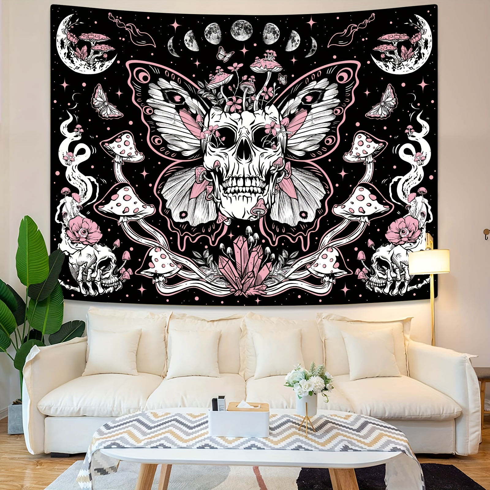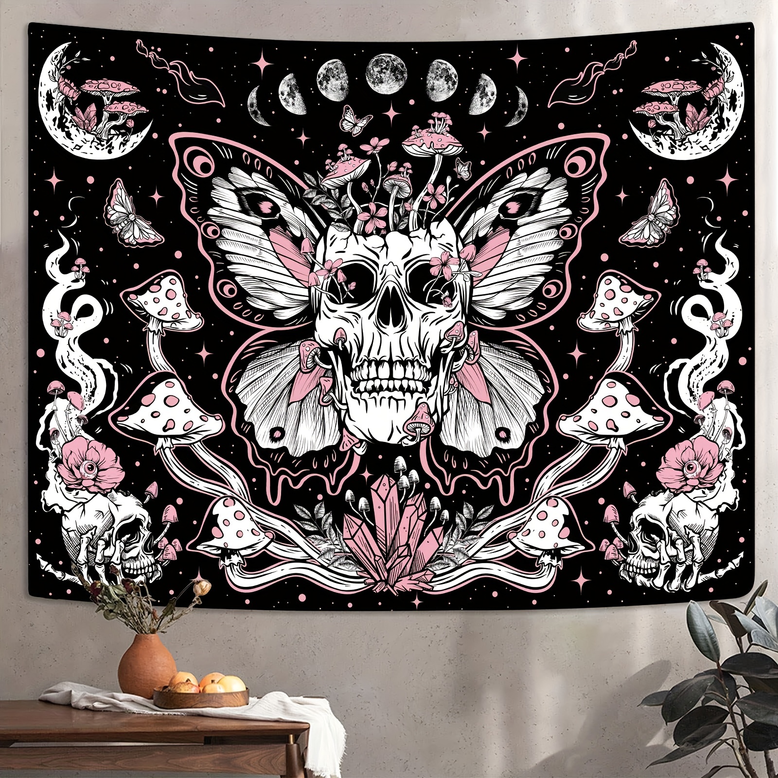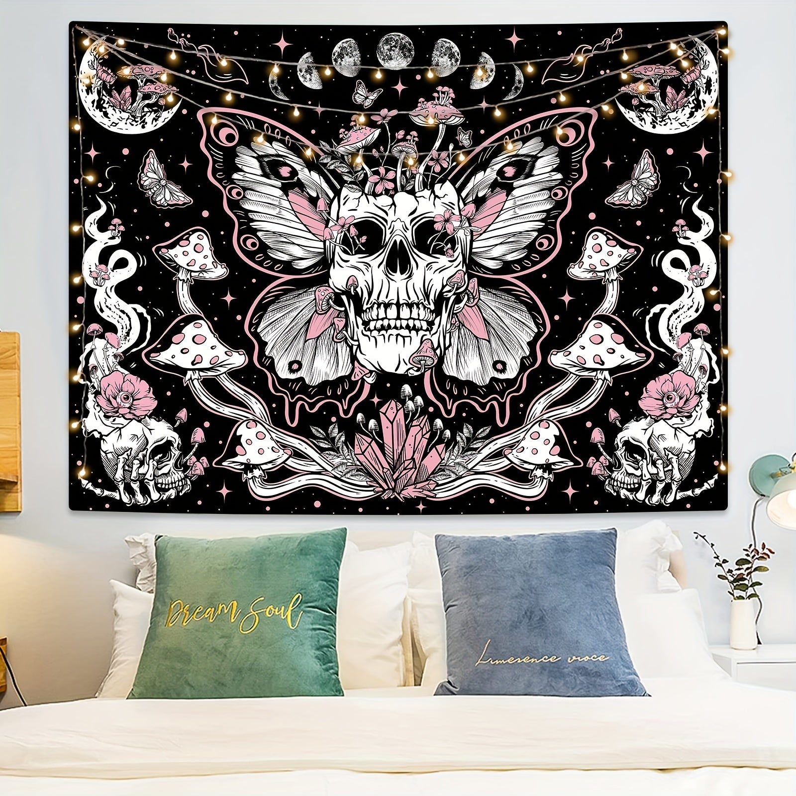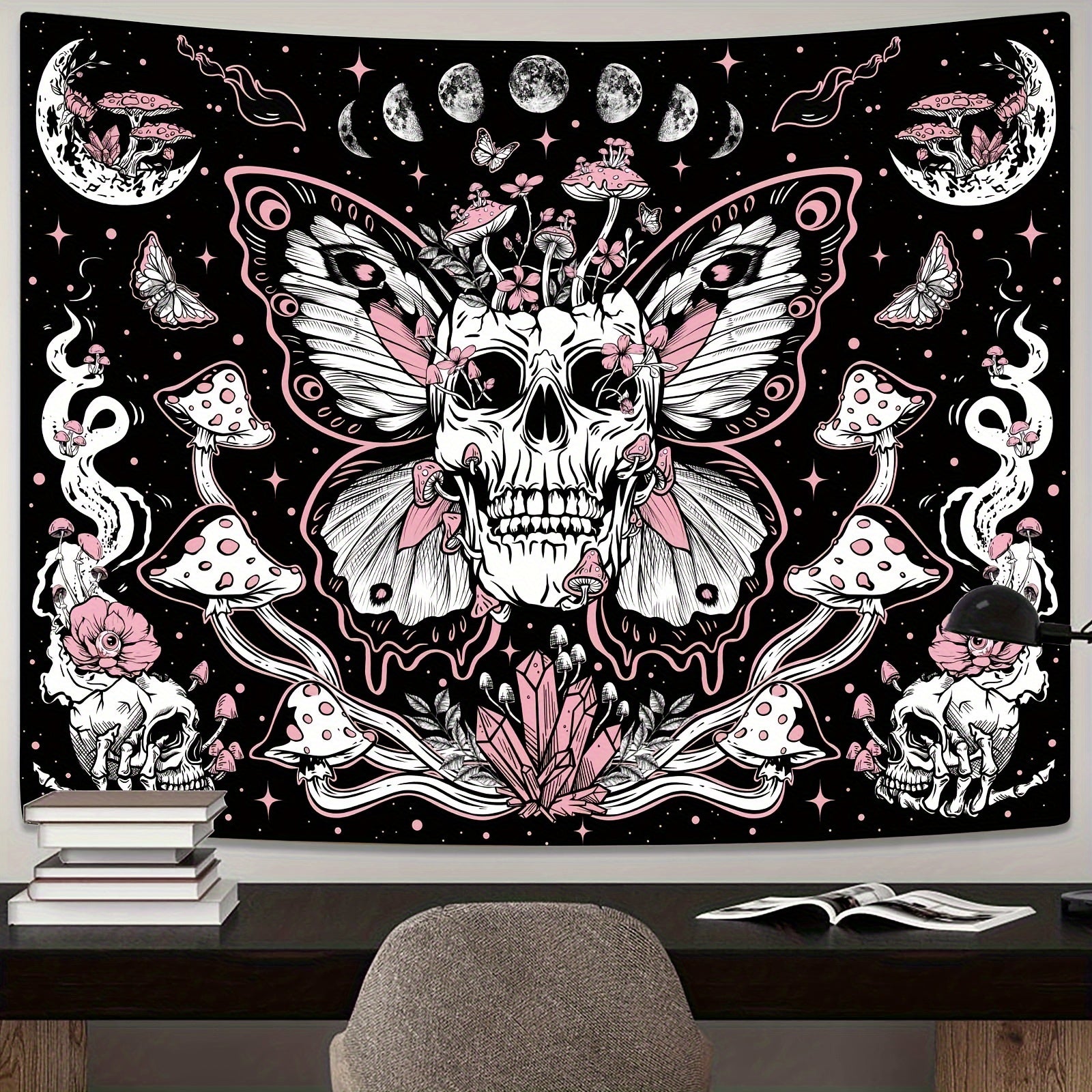 1pc Skull Floral Tapestry, Mushroom Skeleton Goth Tapestry Garden Aesthetic Tapestries For Bedroom Dorm Room Office Home Decor For Halloween