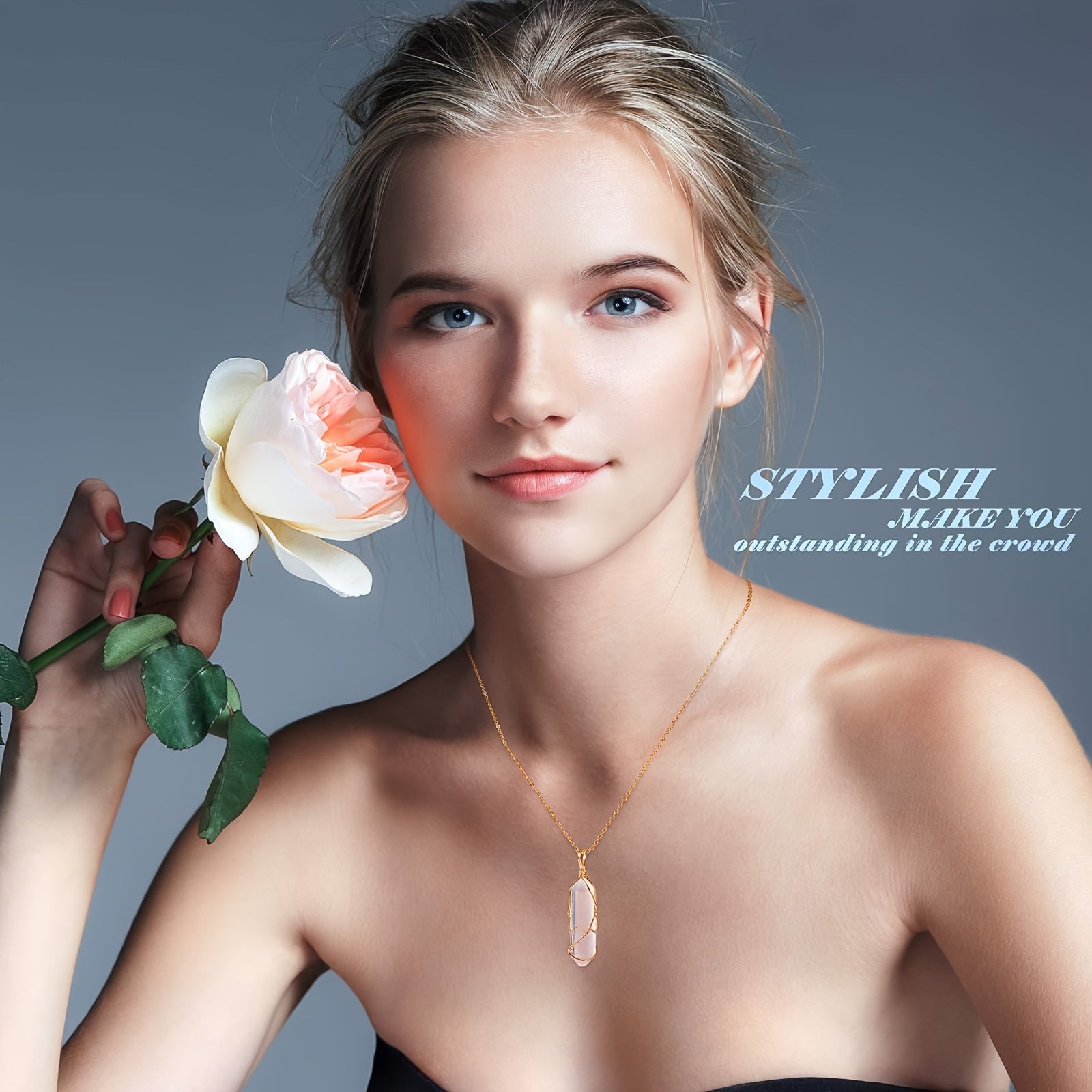 5 Pcs Natural Stone Crystal Necklace Set with Adjustable Chain, Featuring Rose Quartz, Amethyst, Clear Crystal, Green Goldstone, and Tiger Eye for Chakra Healing, Spiritual Jewelry, and Daily Wear