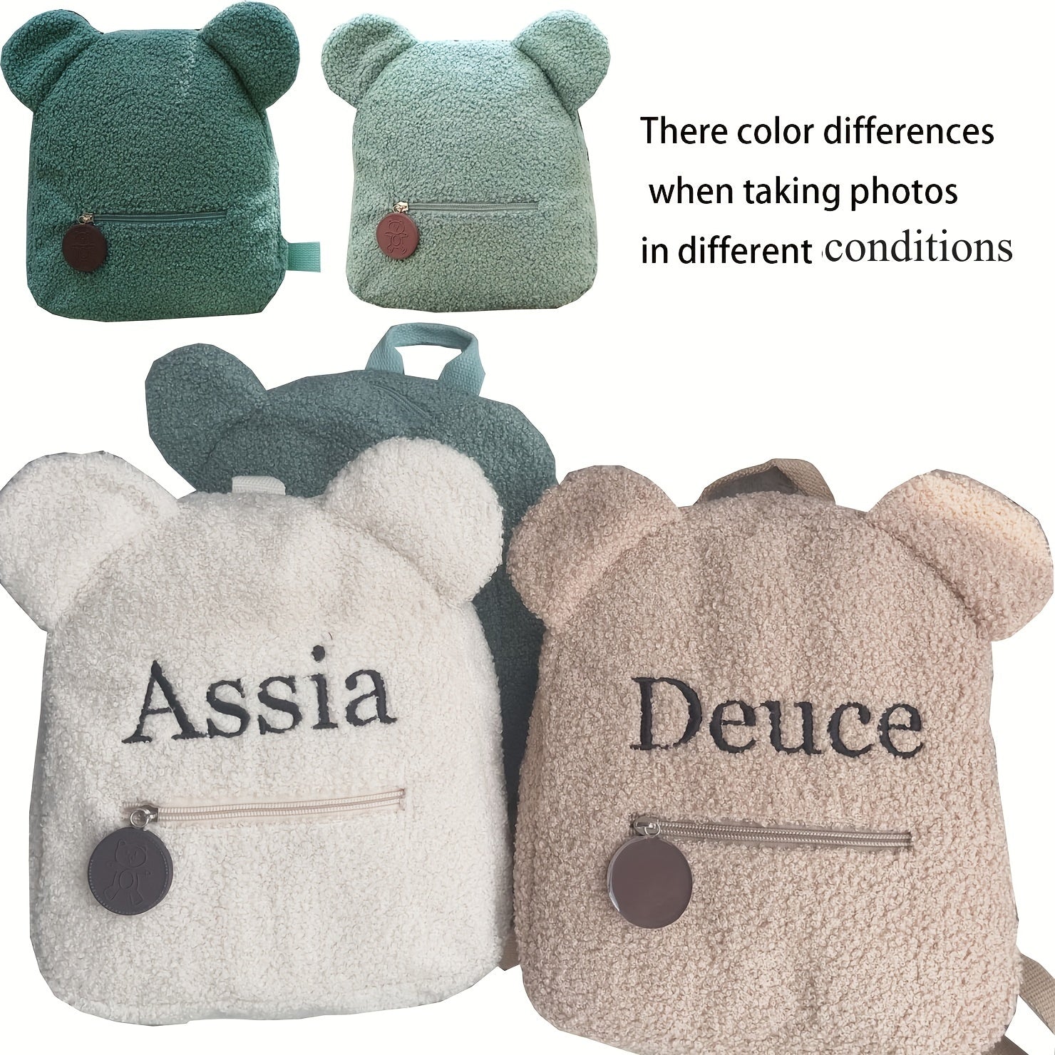 Personalised Womens Girls Cute Bear Pattern Backpack Plush Backpack for girls Custom Name Small Casual Shoulder Daypack Personalised Embroidery Cute Backpack for School Bear Ears Animal Plush Backpack Custom Name Small Backpa